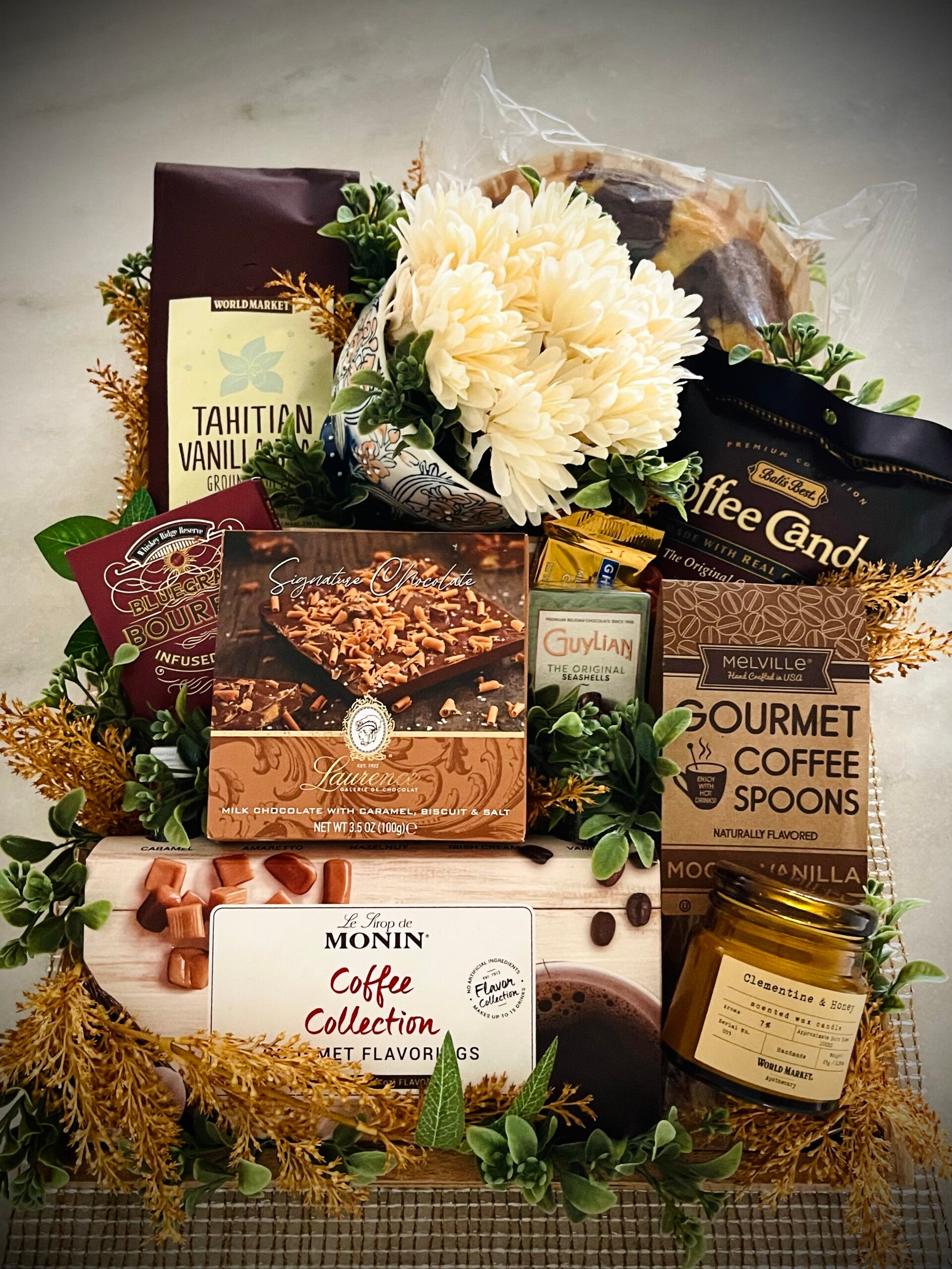 Custom Luxe Tray includes 11 artisan products, a beautiful mug,frother wand and candle.